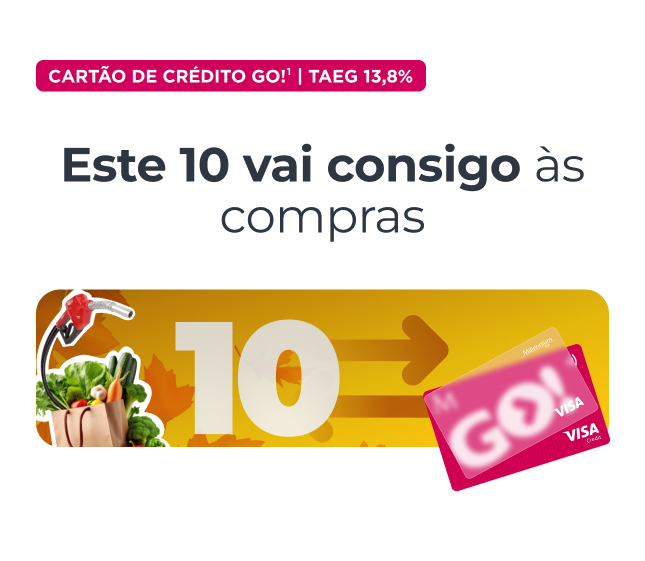 Pede o cartão de crédito GO!1 - TAEG 13,8% - na app ou site, e