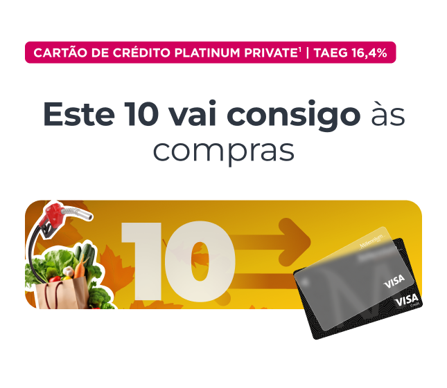 Peça o cartão de crédito Platinum Private1 - TAEG 16,4% - na app ou site, e