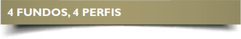 Flexibilidade: carteiras de ativos ajustadas a cada perfil de investidor, procurando, a cada momento, a melhor combinação, de acordo com os limites definidos em cada fundo: