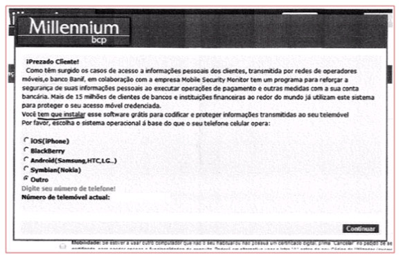 "MillenniumBCP. Para instalar um aplicativo de Seguranca gratuito em seu telefone, use o link a seguir: (...)"